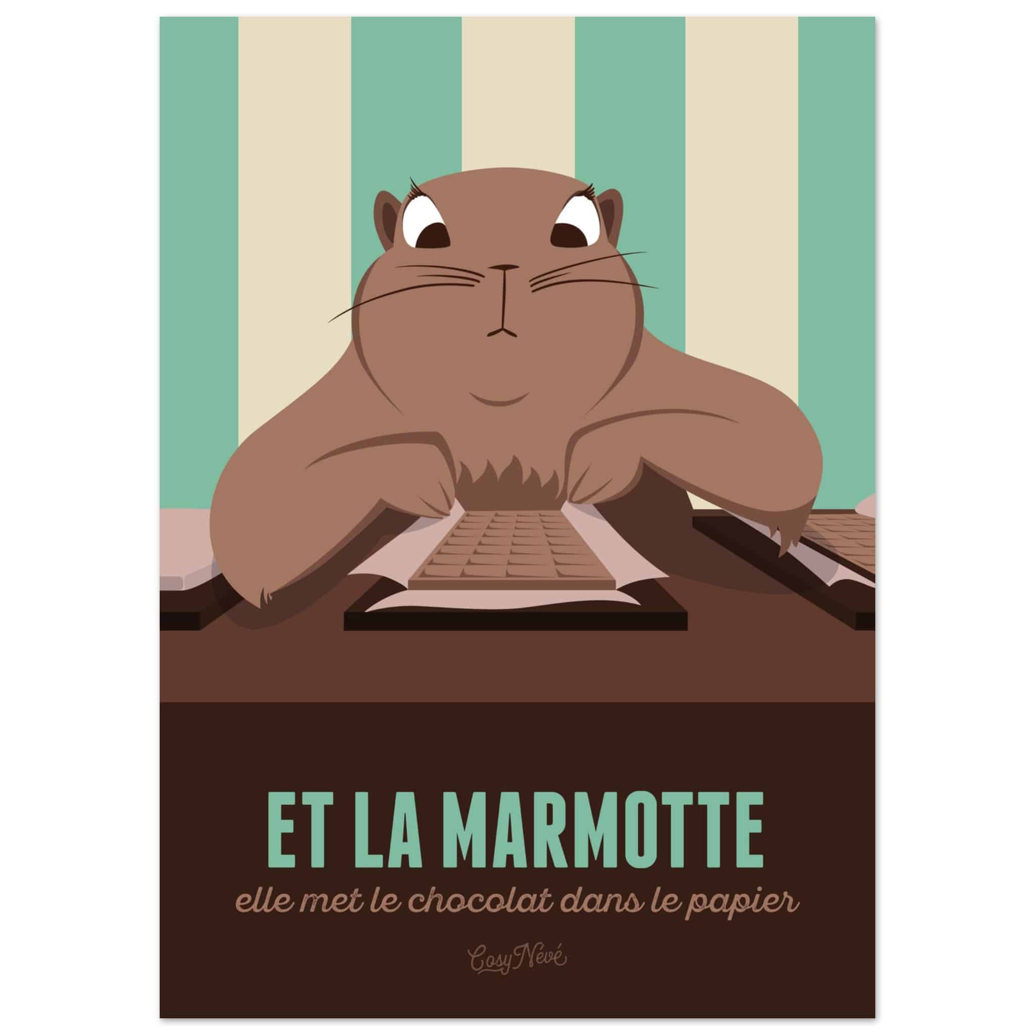 This humorous poster echoes the famous Milka ad that marked a whole generation: “And the marmot, she puts the chocolate in the foil.”